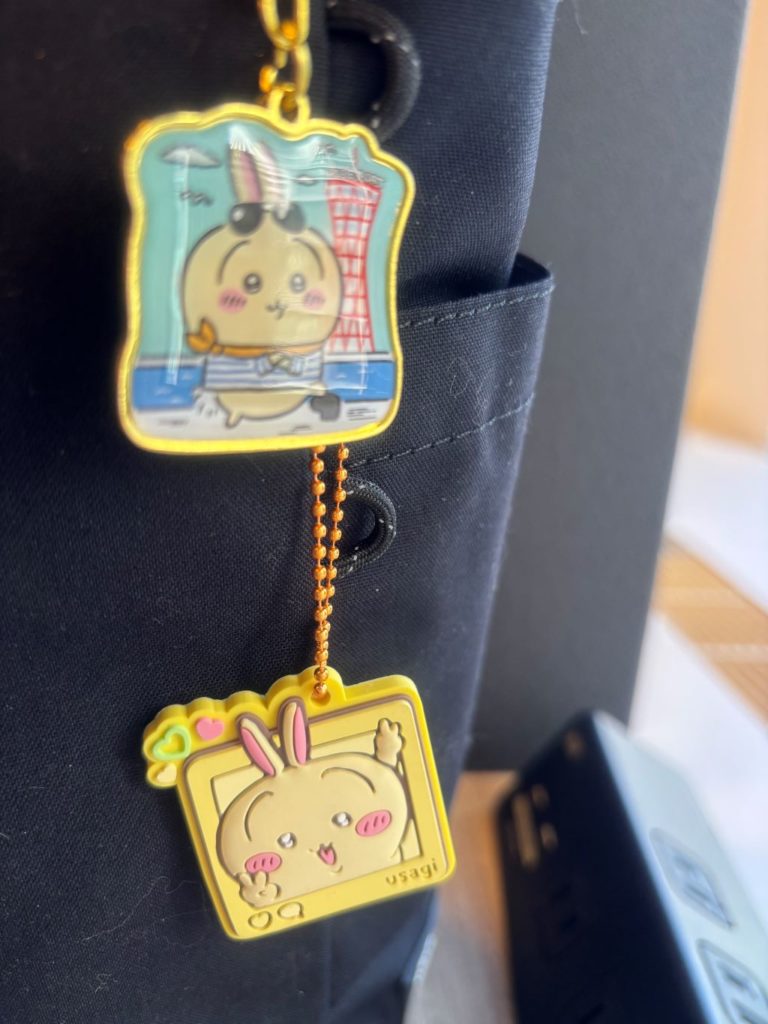 今付けているのは、京都の八つ橋食べてる「うさ」のキーホルダー!