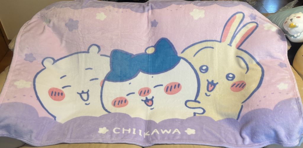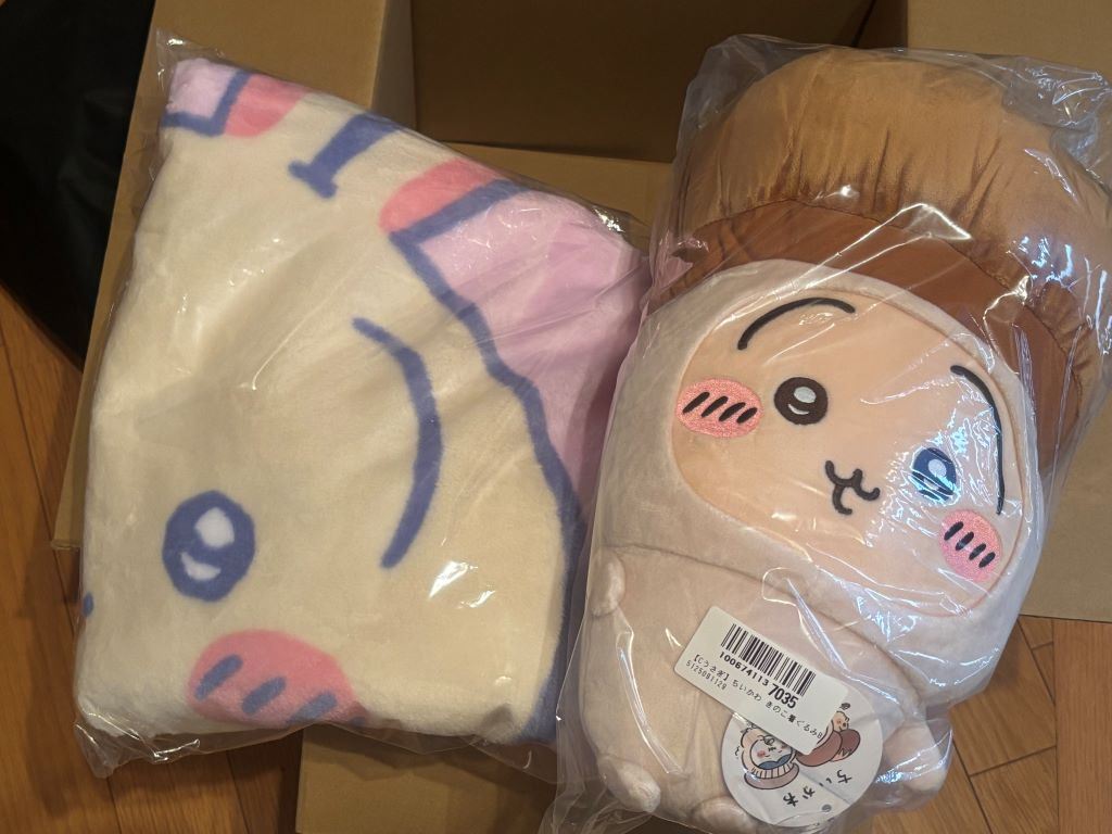 欲しかった、ちいかわ 超BIGマイヤーブランケットときのこ着ぐるみBIGぬいぐるみ(うさぎ)🍄が届きました!DMMオンクレだった!箱が大きいこれはブランケット?