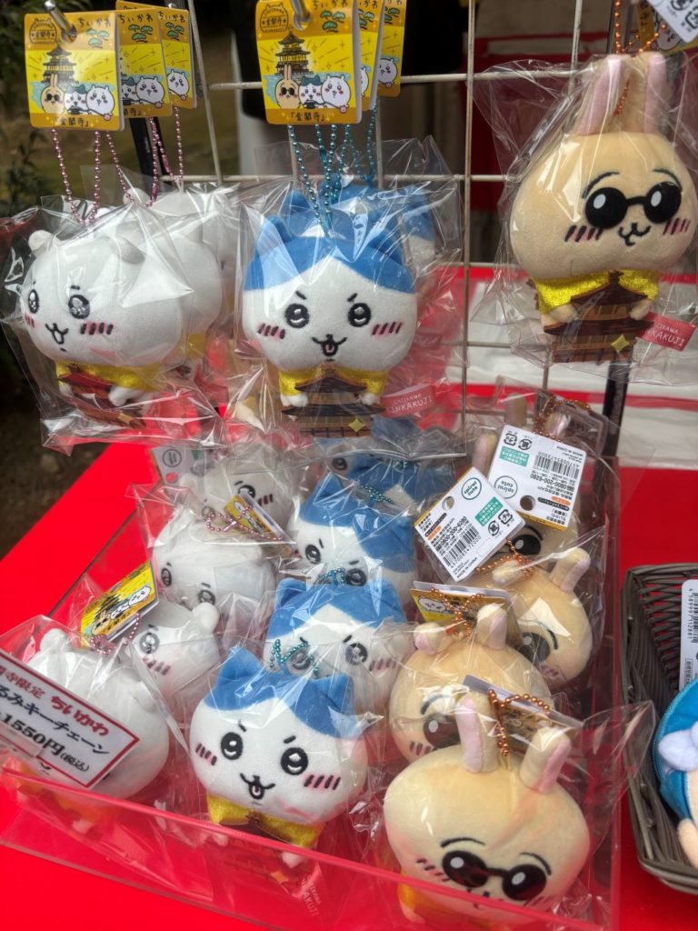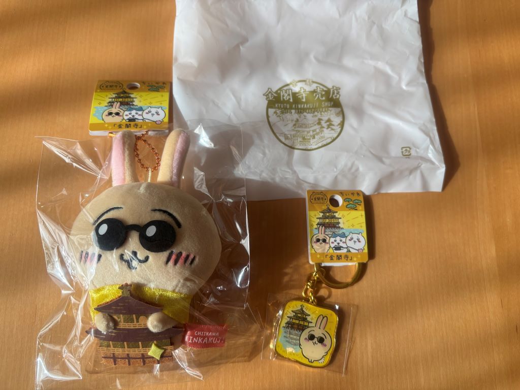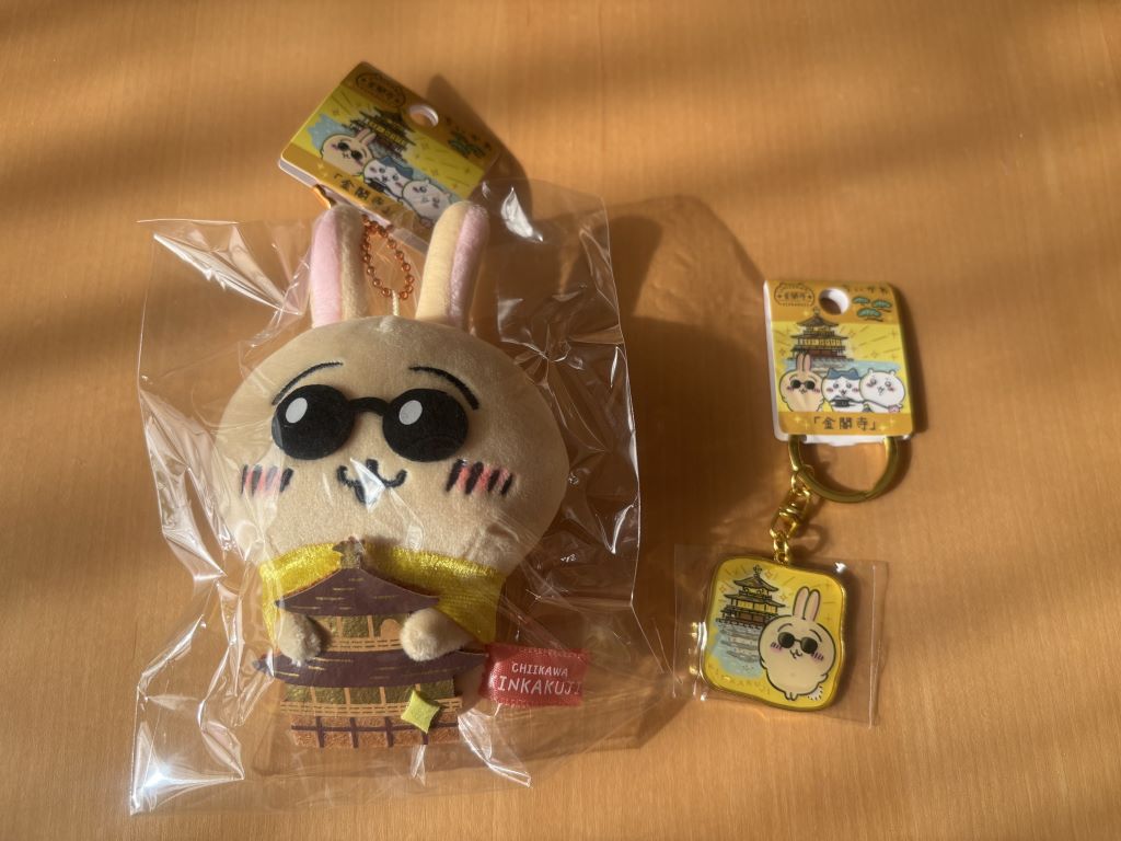 金閣寺を1週回って、最後の方にテントがあってそこにマスコットとキーホルダーありました!