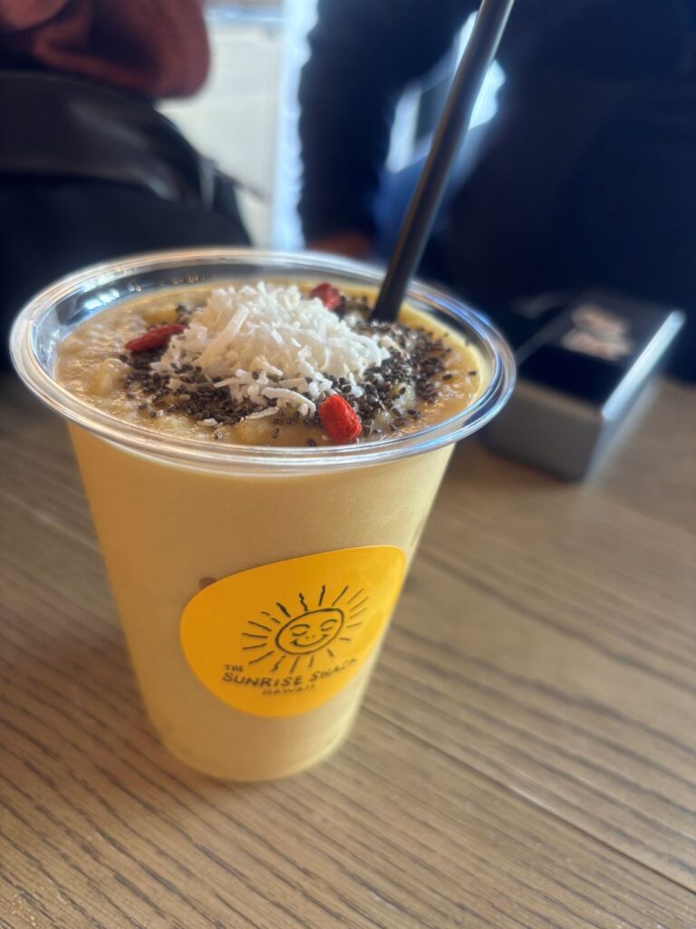 空いてて穴場でした。ココナッツコーヒーとバナナとフルーツのスムージー!