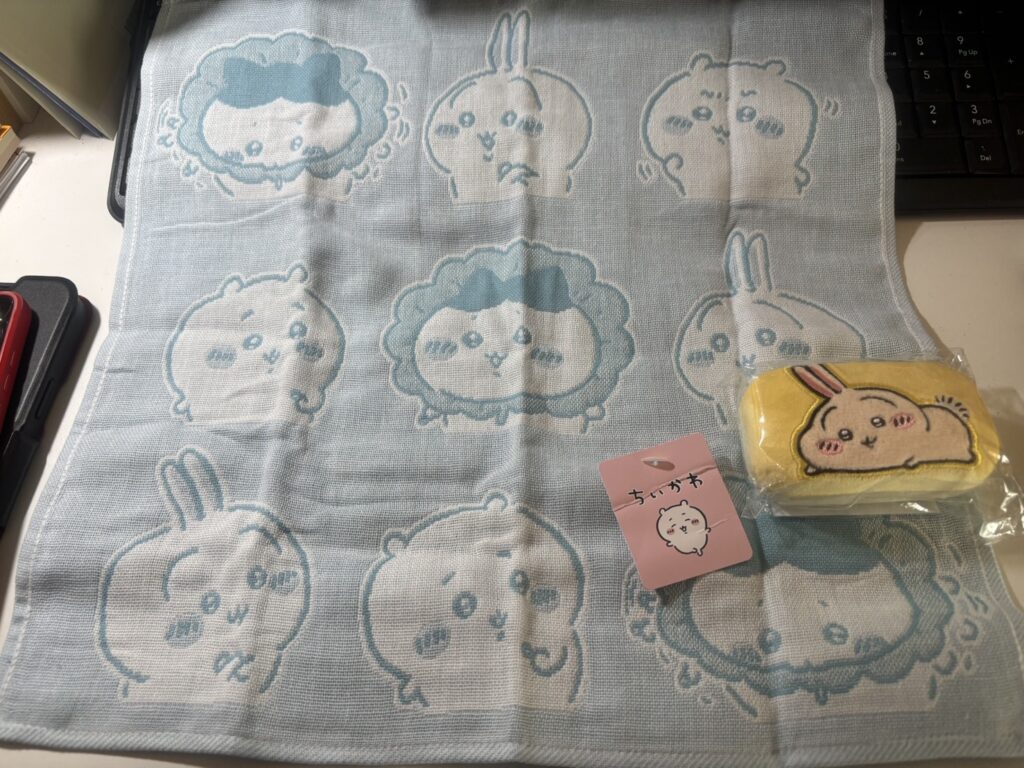 このガーゼハンカチ、普通にちいかわらんどなどで880円くらいで売っているもの。